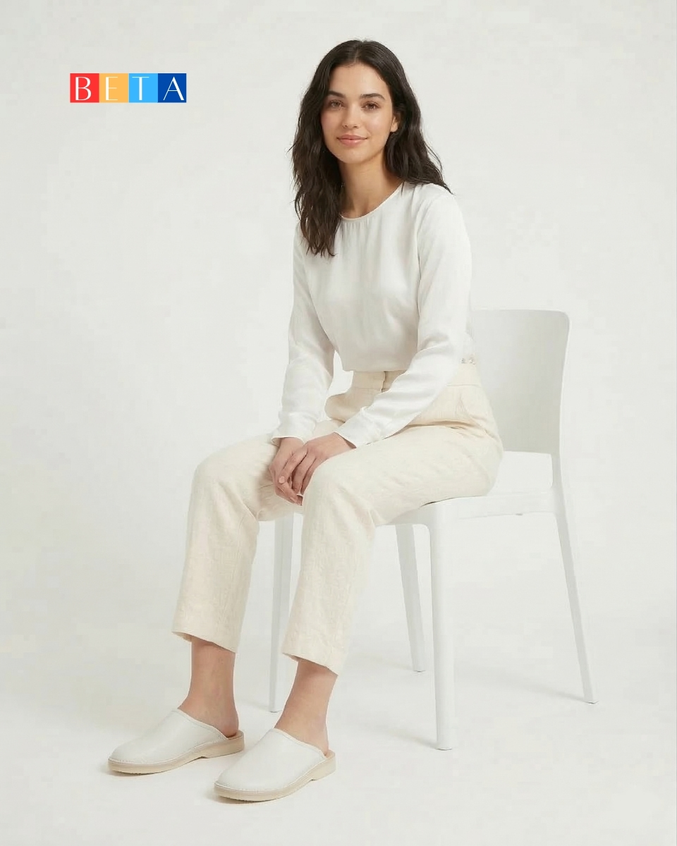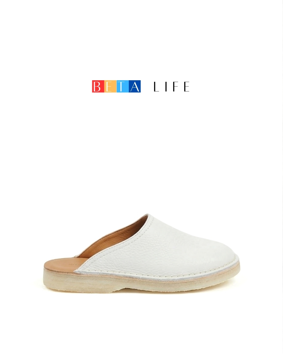 BETA Life Kadın Beyaz Deri Terlik özenle seçilmiş Flotter deriden özel üretilmiştir. Terlik dışa dikmeli içi Dana Deri astarlı dır. Basma Yeri Kösele el işçiliği ile Tabanı termo olup, özel İskandinav ultra rahat kalıba ve kaymaz tabana sahiptir.