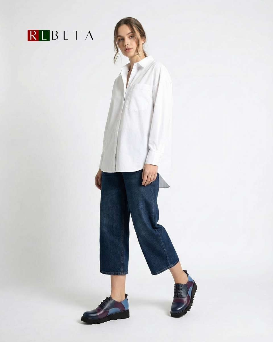 REBETA Deri Kadın Mor Ayakkabı Kombin, flotter deriden ve özel üretilmiştir. Kalıbı rahat ve tabanı poliüretan olup, hafif terletmez tabana sahiptir.