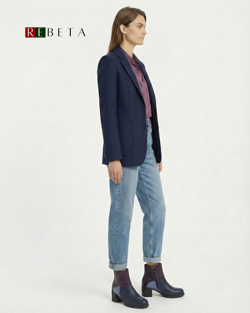 REBETA Deri Kadın Mor Bot Kombin, flotter deriden ve özel üretilmiştir. Kalıbı rahat Tabanı termo olup, özel REBETA kaymaz tabana sahiptir.