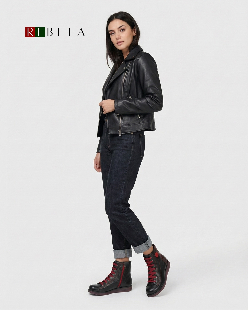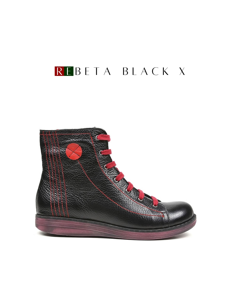 REBETA Deri Kadın Bot Siyah, flotter deriden ve özel üretilmiştir. Tabanı ortopedik termo olup, özel REBETA kaymaz tabana sahiptir.