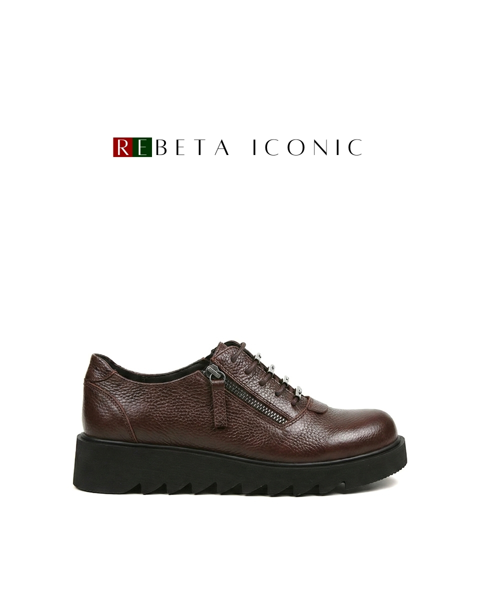 REBETA Deri Kadın Fermuar Detaylı Kahve Rengi Ayakkabı flotter deriden ve özel üretilmiştir. Kalıbı rahat ve tabanı poliüretan olup, hafif terletmez tabana sahiptir.