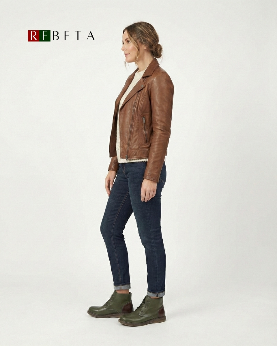 REBETA Deri Kadın Haki Kombin Bot