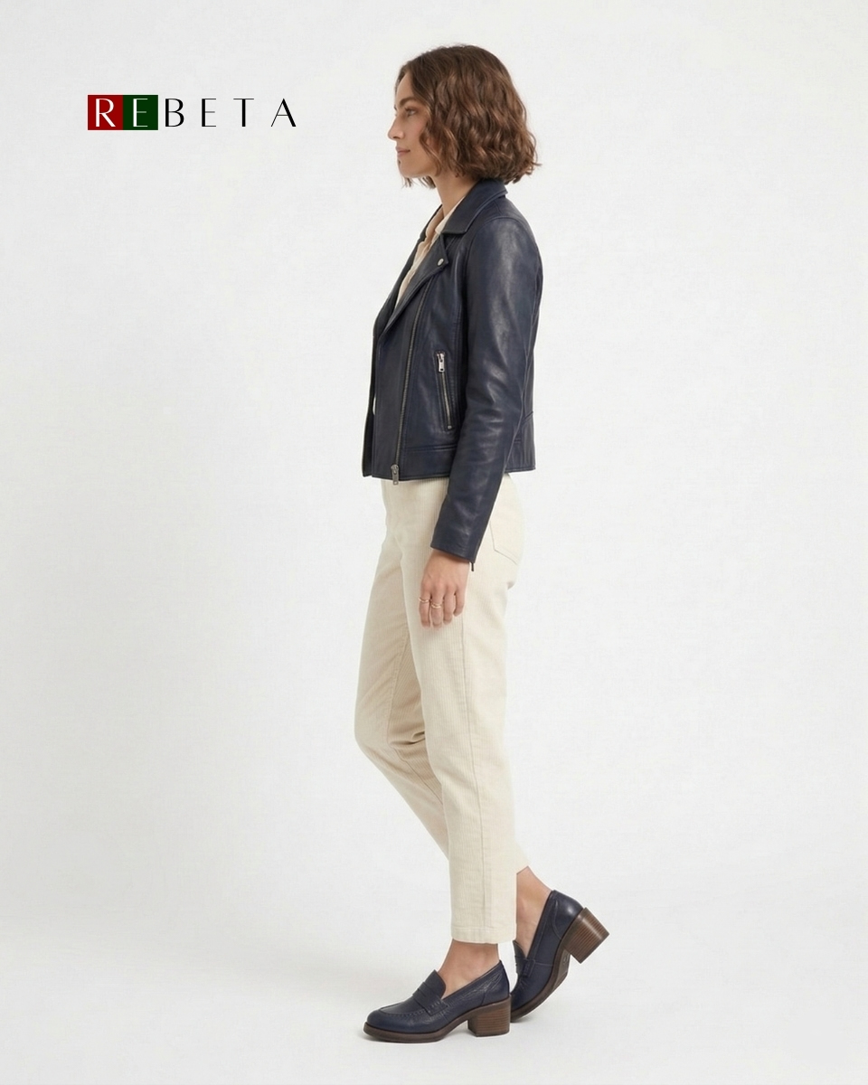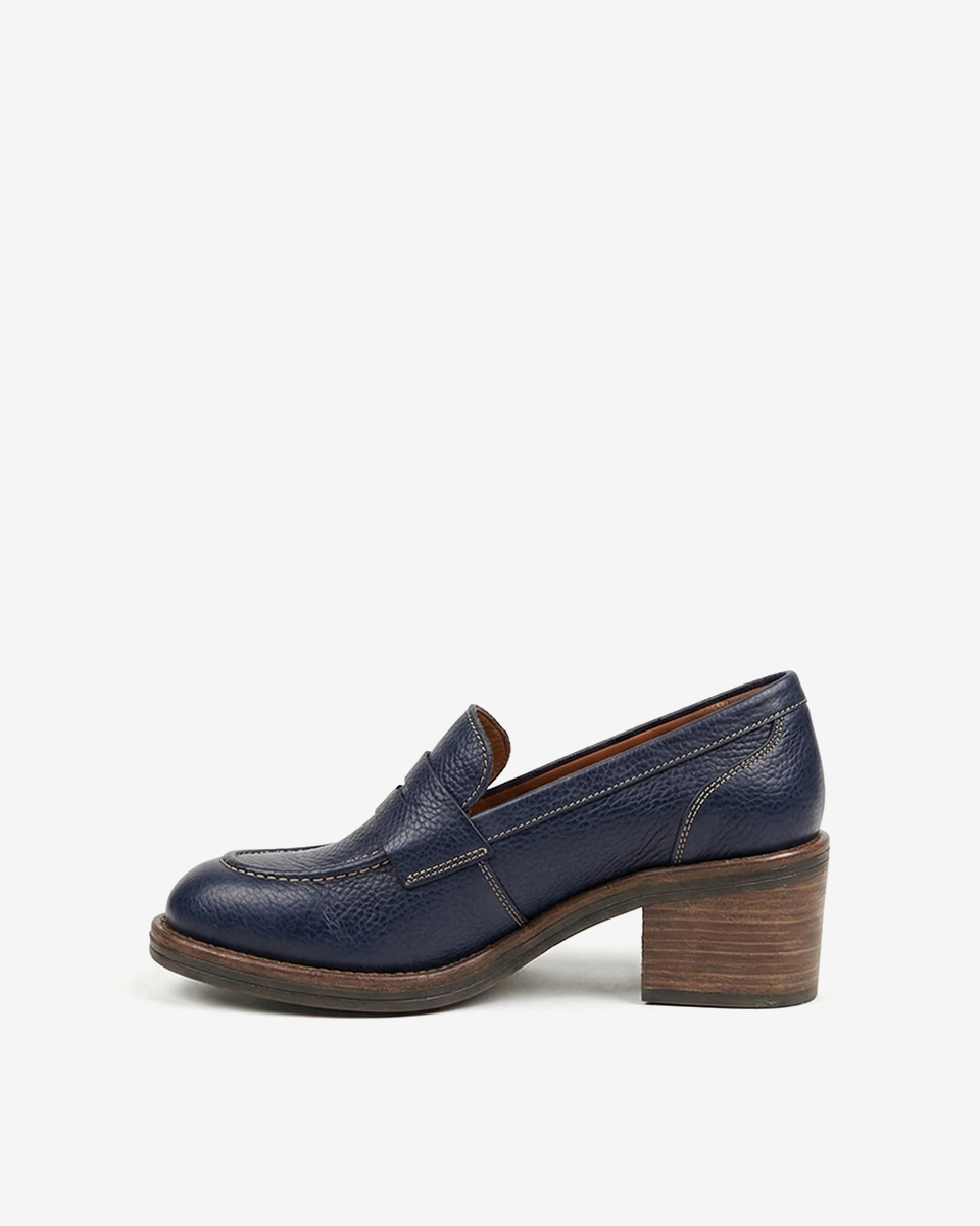 REBETA Deri Kadın Lacivert Topuklu Loafer Ayakkabı flotter deriden ve özel üretilmiştir. Tabanı rahat ve termo olup, esnek ve kaymaz tabana sahiptir.