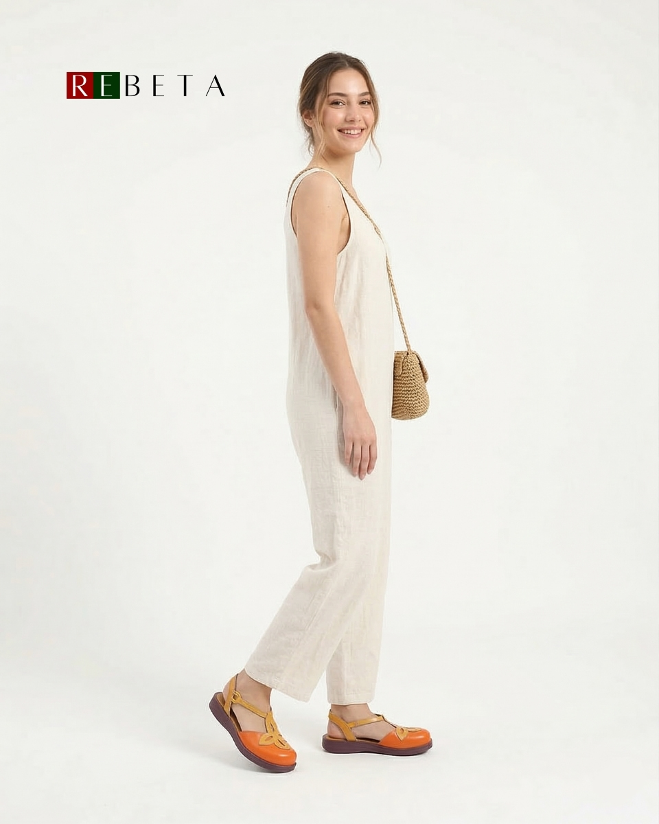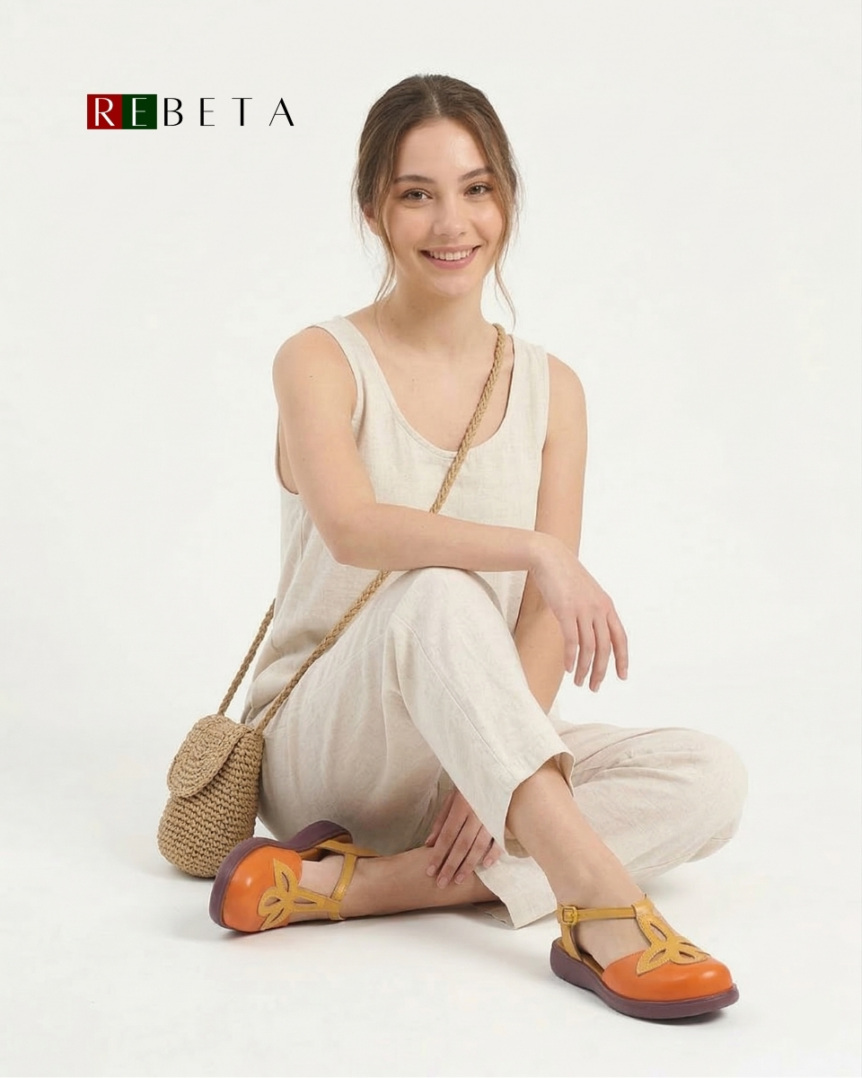 REBETA Deri Kadın Sandalet Turuncu Kombin flotter deriden ve özel üretilmiştir. Tabanı ortopedik termo olup, özel REBETA kaymaz tabana sahiptir.