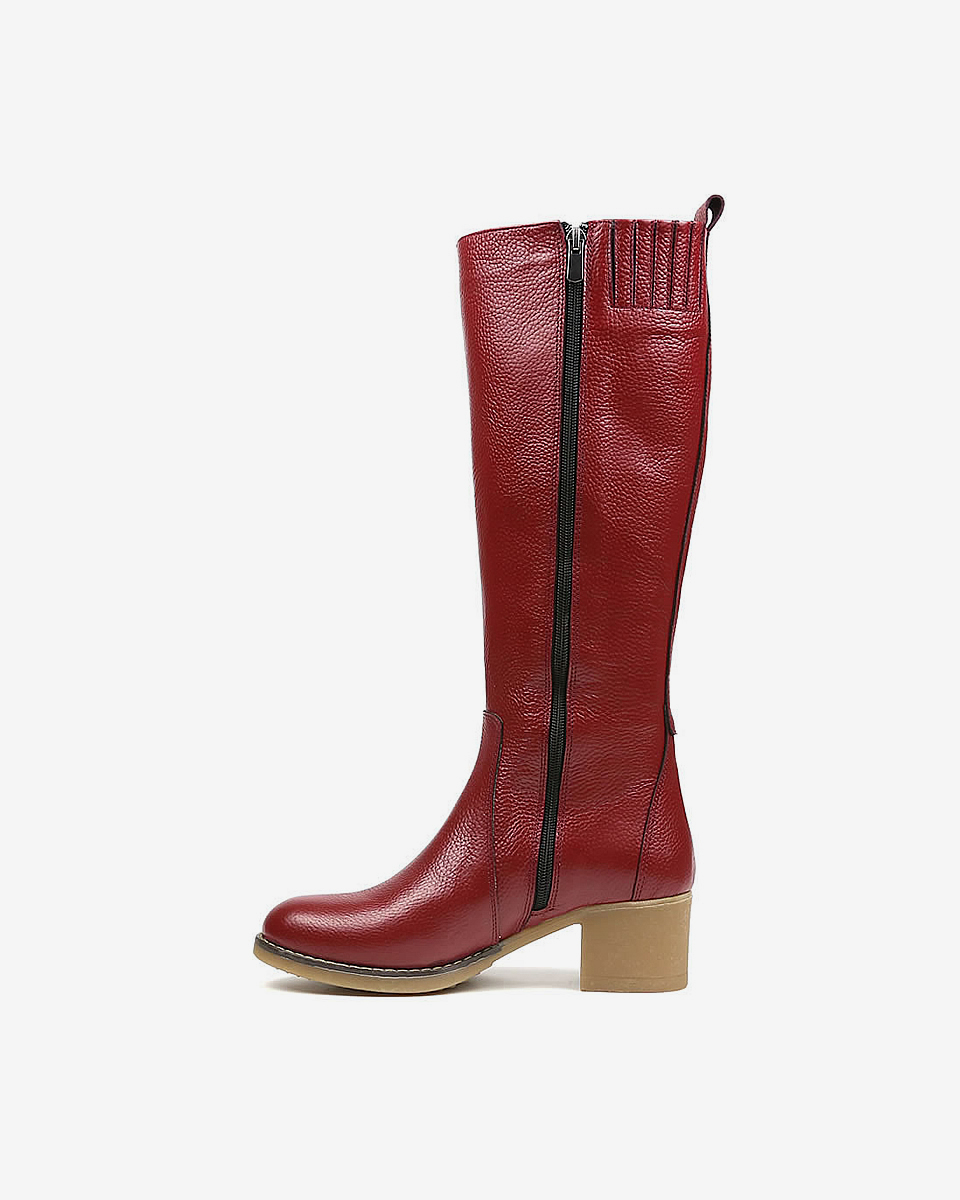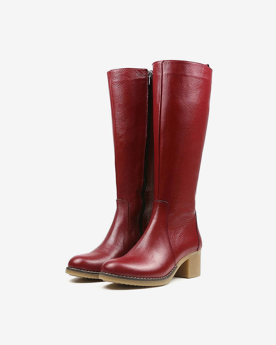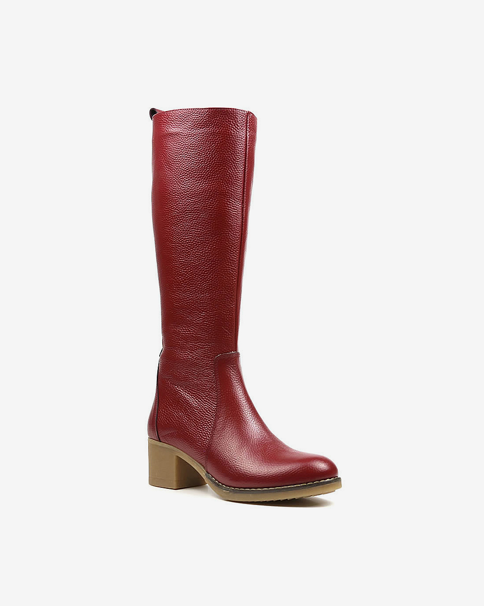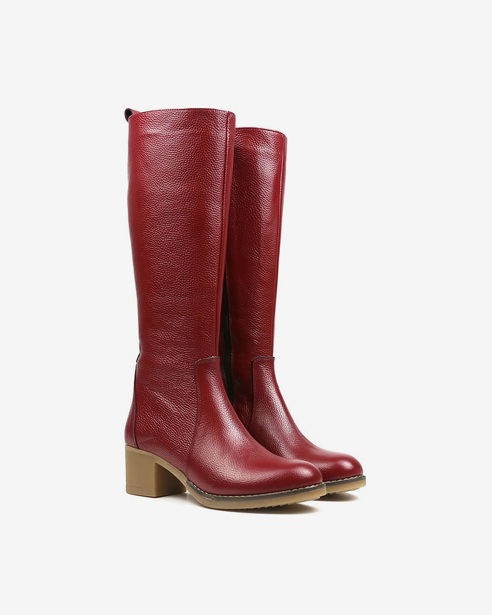 REBETA Deri Kadın Topuklu Koyu Kırmızı Çizme flotter deriden ve özel üretilmiştir. Kalıbı rahat Tabanı termo olup, özel REBETA kaymaz tabana sahiptir.
