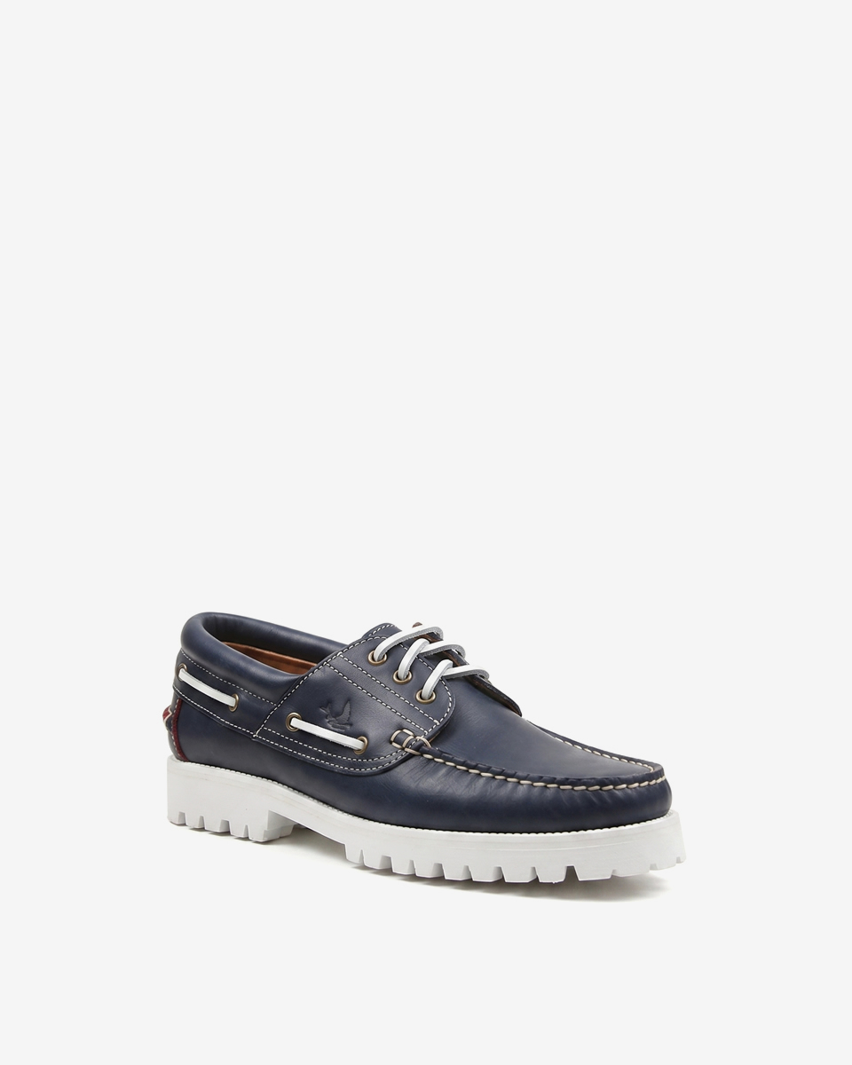 SALURO Deri Erkek Beyaz Tabanlı Lacivert Tekne Ayakkabısı su geçirmez Pull Up deriden ve özel üretilmiştir. Tabanı antistatik, doğal %100 Kauçuk tur ve kaymaz tabana sahiptir. Yüksek standartta Tekne ve Doğa Ayakkabısı.